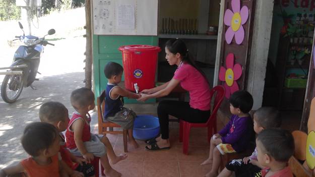 Cô giáo rửa tay cho trẻ