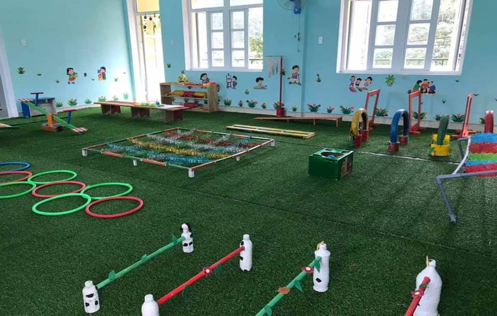 Thật vậy, với sự đoàn kết giữa cán bộ quản lý và giáo viên trong nhà trường, giữa giáo viên với giáo viên, giữa giáo viên với phụ huynh và nhà trường với các ban ngành trên địa bàn... Hơn nữa là lòng nhiệt huyết với lòng yêu nghề yêu trẻ, khó khăn bao nhiêu chúng tôi cố gắng bấy nhiêu. Bên cạnh việc nuôi dạy những đứa con của dân tộc Vân Kiều khôn lớn, khỏe mạnh, dạy chúng biết những con số nét chữ, những điều hay lẽ phải để chúng lớn lên trở thành những người có ích cho xã hội, thì ngoài giờ lên lớp chúng tôi xây dựng trang trí trường lớp. Tận dụng tối đa những giờ rảnh rỗi, chúng tôi phối hợp với phụ huynh và kêu gọi sự giúp đỡ của các ban ngành trên địa bàn, từ những việc đào đá sỏi, xúc đất chuyển về trường, rồi đến đào cây ở trong rừng về trồng, xây đắp từ những thứ nhỏ nhất, trồng và chăm sóc từng cây rau, cây hoa, ngọn cỏ... Chúng tôi, tận dụng những nguyên vật liệu sẵn có của địa phương: cát, đá, tre, lốp xe, vải vụn...để làm tranh ảnh, các loại rau củ quả, các con rối... trang trí trường lớp và phục vụ cho việc dạy và học. Chúng tôi đã tạo nên một ngôi trường miền núi thật khang trang đẹp mắt.