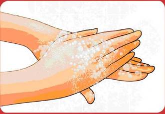 - Bước 1: Làm ướt hai bàn tay bằng nước sạch. Thoa xà phòng vào lòng bàn tay. Chà xát hai lòng bàn tay vào nhau.