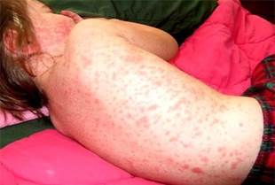 Hình ảnh trẻ bị sốt xuất huyết mọc ban ở mặt, cổ, thân mình, tay và chân