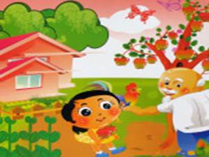 Một hôm, Ông, Bé, Gà, Bươm Bướm cùng nói to: Cây ơi! Cây lớn mau! Thế là những quả táo chín ngon lành hiện ra. Bé giơ áo ra, những quả táo chín ngon lành rơi đầy vào lòng của bé.